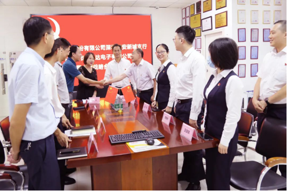 為深入貫徹落實(shí)黨中央和上級(jí)黨組織相關(guān)精神,充分發(fā)揮黨組織的戰(zhàn)斗堡壘作用和中共黨員先鋒模范作用,深化銀企合作共同提高,2020年8月12日,中國(guó)銀行股份有限公司深圳新城支行與深圳市馳通達(dá)電子有限公司黨支部隆重舉行黨建結(jié)對(duì)共建暨全面戰(zhàn)略合作簽約儀式。出席本次簽約儀式的中行領(lǐng)導(dǎo)有:寶安管轄支行鐘俊副行長(zhǎng),新城支行李克華行長(zhǎng),新城支行陳莉副行長(zhǎng),新城支行黃程林副行長(zhǎng)等;出席本次簽約儀式的馳通達(dá)集團(tuán)領(lǐng)導(dǎo)有:集團(tuán)董事長(zhǎng)、南山區(qū)人大代表萬騰馳,集團(tuán)行政總裁、黨支部書記莫蓉,輪值ceo、法人代表熊劍,財(cái)務(wù)部經(jīng)理陳曉東等支委成員。中行領(lǐng)導(dǎo)對(duì)本次黨建共建活動(dòng)給予高度重視和大力支持,并對(duì)受疫情影響導(dǎo)致部分出口業(yè)務(wù)受阻的企業(yè)給予大力的授信額度支持,對(duì)馳通達(dá)集團(tuán)日常經(jīng)營(yíng)和平穩(wěn)發(fā)展提供了很大的幫助,此行深入基層企業(yè)傳經(jīng)送寶更是難能可貴,萬騰馳董事長(zhǎng)對(duì)此表示大加贊賞和感謝!